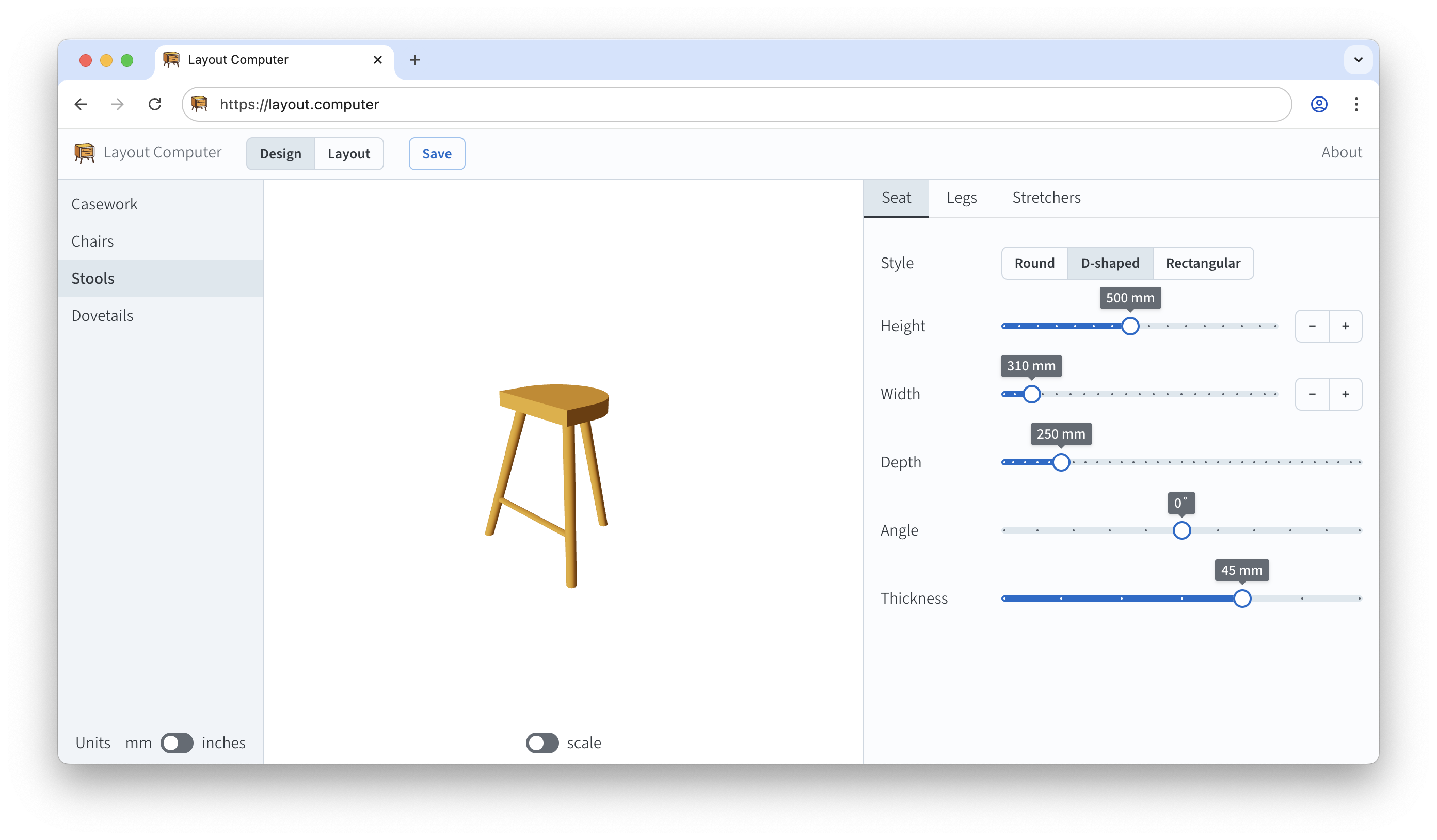 Added seat bevels for stick chairs and stools